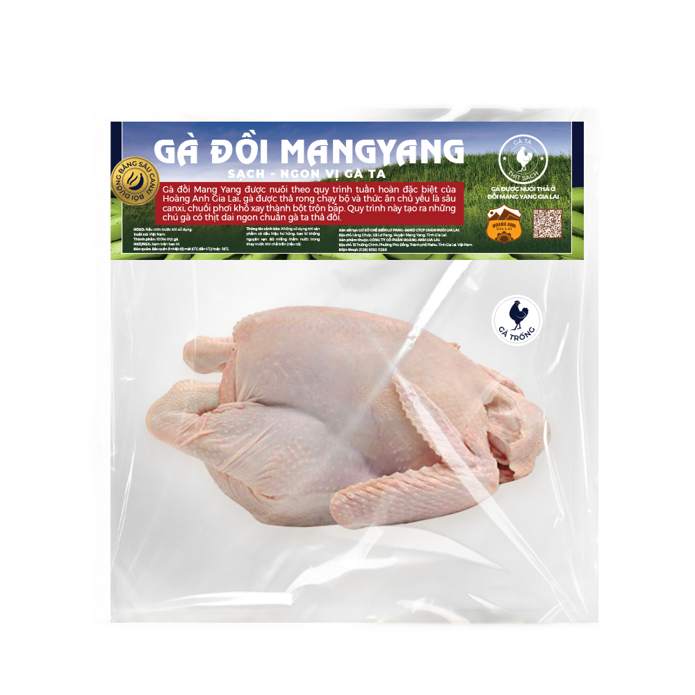Gà Đồi Mang Yang Hoàng Anh Gia Lai được nuôi thả với chế độ ăn chuối và sâu canxi và chăm sóc trong môi trường tự nhiên, gà không những có chất lượng thịt ngon ngọt, mà còn đảm bảo dinh dưỡng cao nhờ chế độ ăn độc đáo và bền vững.