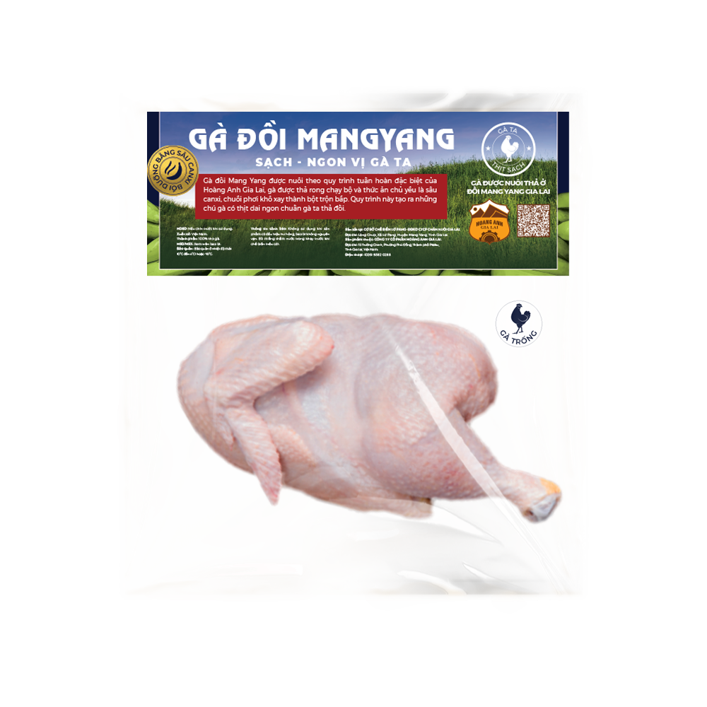 Gà Đồi Mang Yang Hoàng Anh Gia Lai được nuôi thả với chế độ ăn chuối và sâu canxi và chăm sóc trong môi trường tự nhiên, gà không những có chất lượng thịt ngon ngọt, mà còn đảm bảo dinh dưỡng cao nhờ chế độ ăn độc đáo và bền vững.